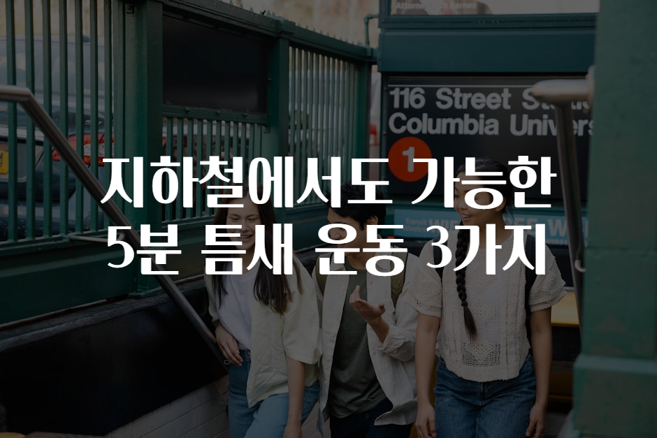 서울의 지하철은 많은 사람들에게 일상생활의 중요한 부분이지만, 출퇴근 시간의 압박은 운동을 할 시간조차 없는 현실이죠. ⏳ 하지만 우리가 알고 있는 운동의 개념은 때때로 좁고 제한적입니다. 🌟 오늘은 바쁜 일상이지만 쉽게 따라 할 수 있는 5분 틈새 운동 3가지를 알려드리려고 합니다. 지하철에서 동료들과 수다를 떨며, 또는 혼자서도 1.2.3.4하는 느낌으로 파워 업해보세요! 💪😄