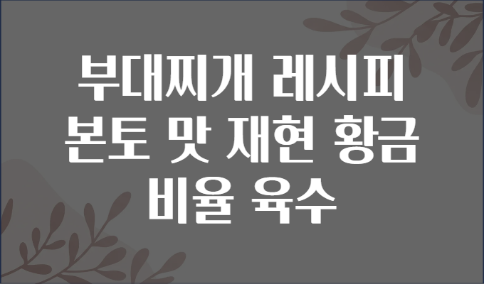 부대찌개 레시피 본토 맛 재현 황금 비율 육수